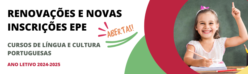 O prazo das renovações e inscrições de novos alunos nos cursos de Português Língua de Herança inicia terminará no dia 30 de abril de 2024. As novas inscrições são feitas online, na plataforma EPE Digital, em http://epe.instituto-camoes.pt/inscricao, ou através da App EPE Digital, disponível para instalação na PlayStore (android) . Os professores EPE poderão apoiar os encarregados de educação neste processo. Os encarregados de educação podem também optar pelo preenchimento do formulário de inscrição em formato de papel, enviando-o posteriormente para a Coordenação de ensino ou para um professor da rede EPE.